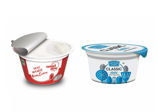 Packaging of yoghurt, juices, mineral water etc in PS, PVC, PR PET, PE, and HDPE jars, cups, and tubs.